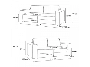 | Abmessungen Sofa 2-Sitzer (BxTxH) |