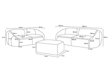 • Die Kombination aus zwei Sofas und einem Hocker ist ideal, um ein komplettes Wohnzimmer zu schaffen