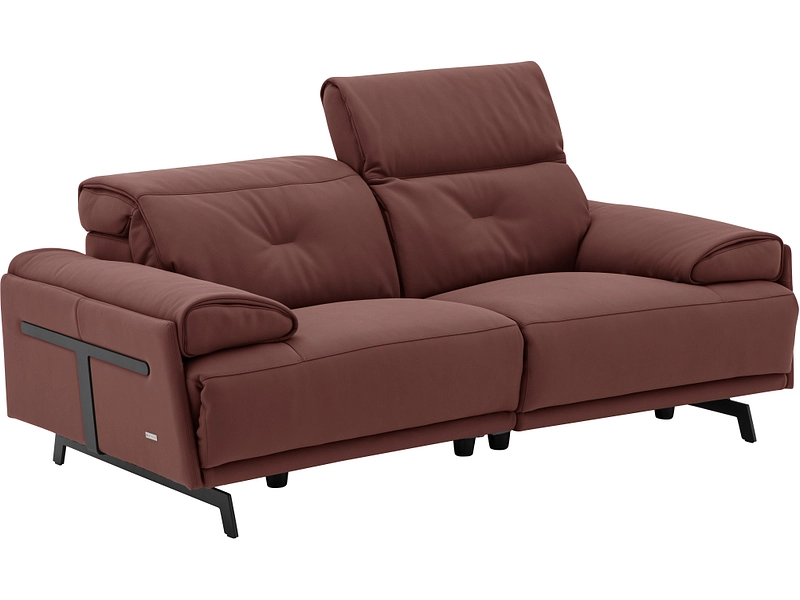 Entdecke das 2-sitzige Sofa CAMPO DE FIORI SIENA, eine Einladung zu Komfort und Eleganz. Sein Bezug aus rotem Echtleder in Kombination mit den schwarzen Füssen verleiht deiner Einrichtung einen modernen und warmen Stil. Geniesse den aussergewöhnlichen Komfort dank der perfekt ausbalancierten Sitzfläche aus Schaumstoff und Federn. Mit den elektrisch verstellbaren Kopfstützen kannst du die ideale Position zum Entspannen finden. Die Metallfüsse mit mattem Finish erleichtern die Pflege. Das robuste Gestell aus Sperrholz und Kiefer garantiert seine Langlebigkeit. Mit seinen perfekten Massen für zwei Personen wird dieses Sofa schnell zu deinem Lieblingsrefugium. Sein Rindsleder verspricht dir ein einzigartiges Erlebnis.