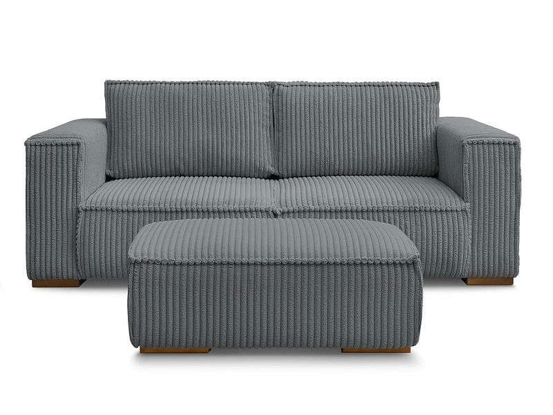 2er Sofa mit Hocker BOBOCHIC CHELSEA Cord-Stoff dunkelgrau