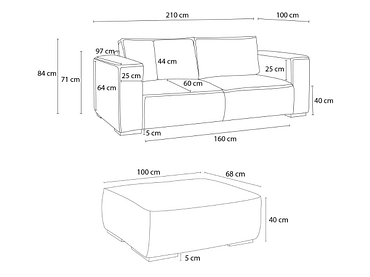 | Maße des mittleren Kissens (cm) |