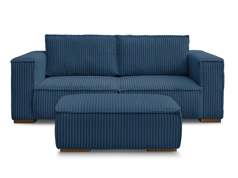 2er Sofa mit Hocker BOBOCHIC CHELSEA Cord-Stoff dunkelblau