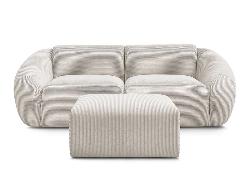 2er Sofa mit Hocker BOBOCHIC TINA Cord-Stoff beige