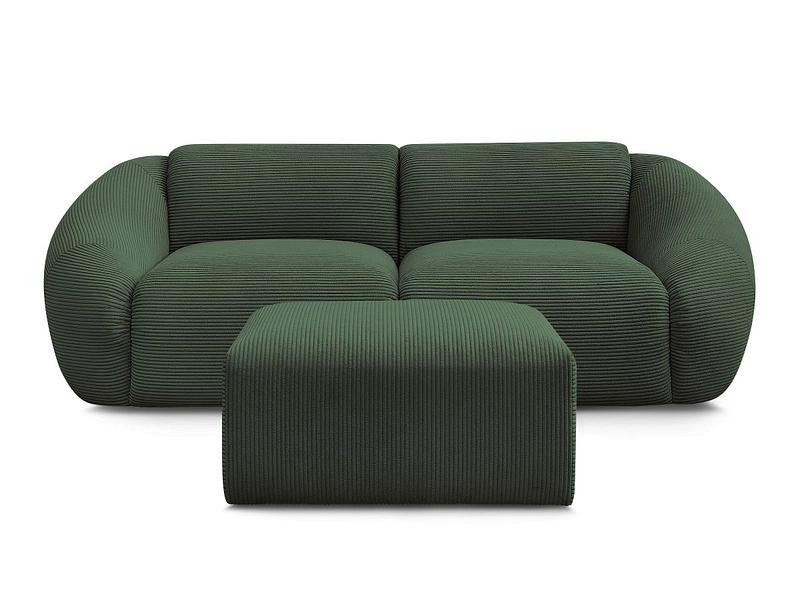 2er Sofa mit Hocker BOBOCHIC TINA Cord-Stoff grün