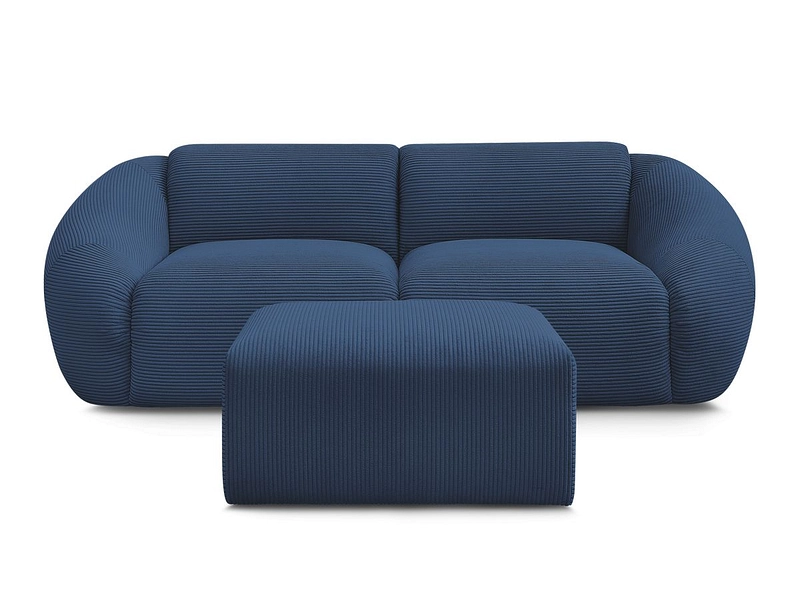 2er Sofa mit Hocker BOBOCHIC TINA Cord-Stoff dunkelblau