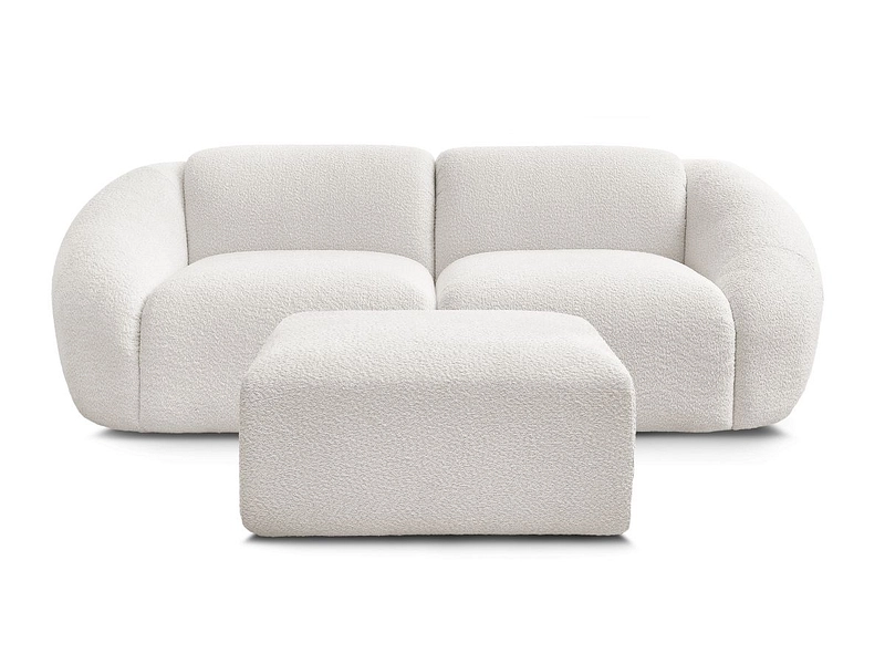 2er Sofa mit Hocker BOBOCHIC TINA Boucle-Stoff weiss