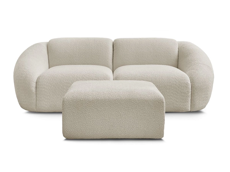 2er Sofa mit Hocker BOBOCHIC TINA Boucle-Stoff beige