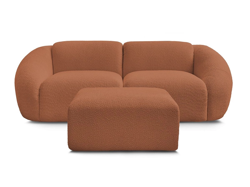 2er Sofa mit Hocker BOBOCHIC TINA Boucle-Stoff orange