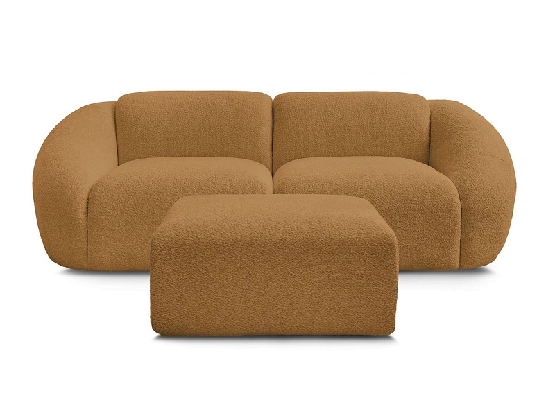 2er Sofa mit Hocker BOBOCHIC TINA Boucle-Stoff gelb