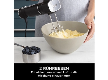 - 1 Motorbasis - 3 GeräteEine 850-Watt-Motorbasis treibt drei Geräte an - einen Handmixer, einen Stabmixer und einen Zerkleinerer. Wechseln Sie einfach zwischen den leichten Aufsätzen, um mühelos Zutaten aufzuschlagen, zu mixen, zu kneten, zu mischen, zu pürieren und zu hacken.Der SmartTorque-Motor hilft bei der Verarbeitung von härteren Texturen für eine perfekte Konsistenz. Sie können alles zubereiten, von cremigen Suppen, Soßen und Salsa bis hin zu Kuchenteig, Brotteig und Schlagsahne, sowie Zutaten von geschlagenem Eiweiß bis zu fein gehacktem Gemüse vorbereiten.Sparen Sie Platz in Ihrer Küche ohne auf die optimale Texturen und leckere Rezepte verzichten zu müssen.
