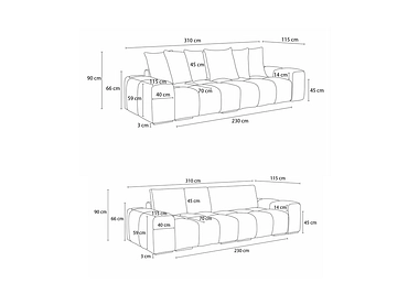 | Maße des mittleren Kissens (cm) |