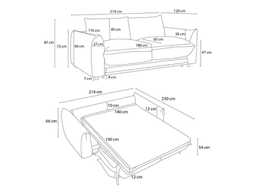 - Das Sofa ist mit einer 12 cm dicken Matratze ausgestattet, so dass Sie täglich die Liegefläche nutzen können.