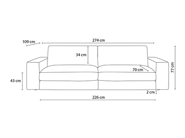 - Für optimalen Komfort ist das Sofa mit zwei grossen abnehmbaren Kissen ausgestattet, die mit Silikon gefüllt sind