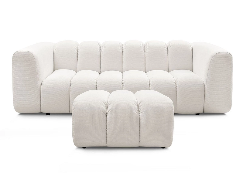 3er Sofa mit Hocker BOBOCHIC TALIA Stoff chiniert weiss