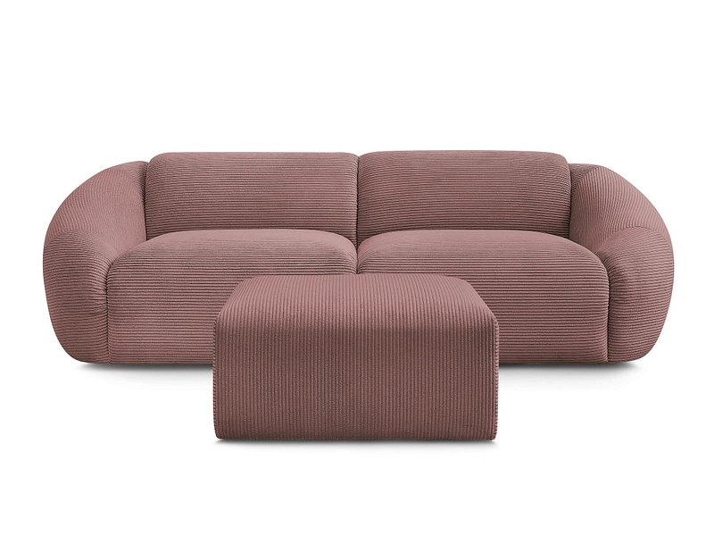 3er Sofa mit Hocker BOBOCHIC TINA Cord-Stoff rosa