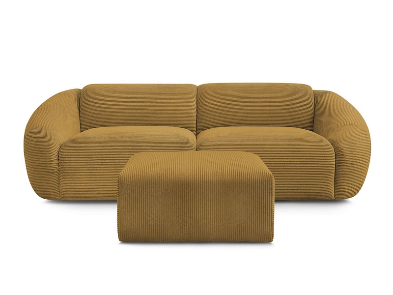 3er Sofa mit Hocker BOBOCHIC TINA Cord-Stoff gelb