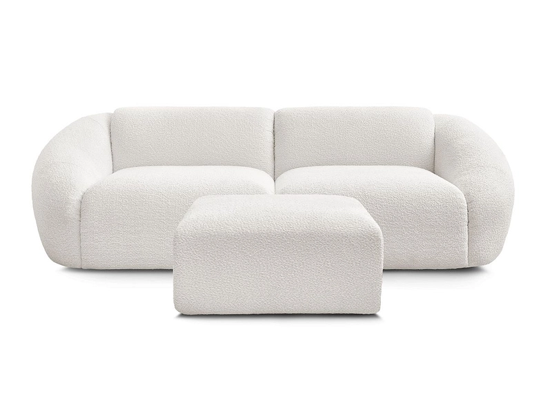 3er Sofa mit Hocker BOBOCHIC TINA Boucle-Stoff weiss