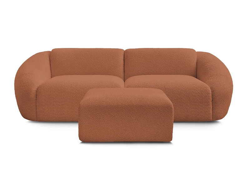 3er Sofa mit Hocker BOBOCHIC TINA Boucle-Stoff orange