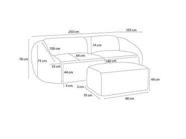 - Die abgerundete Sitzfläche und die Armlehnen des Sofas sorgen für hohen Komfort