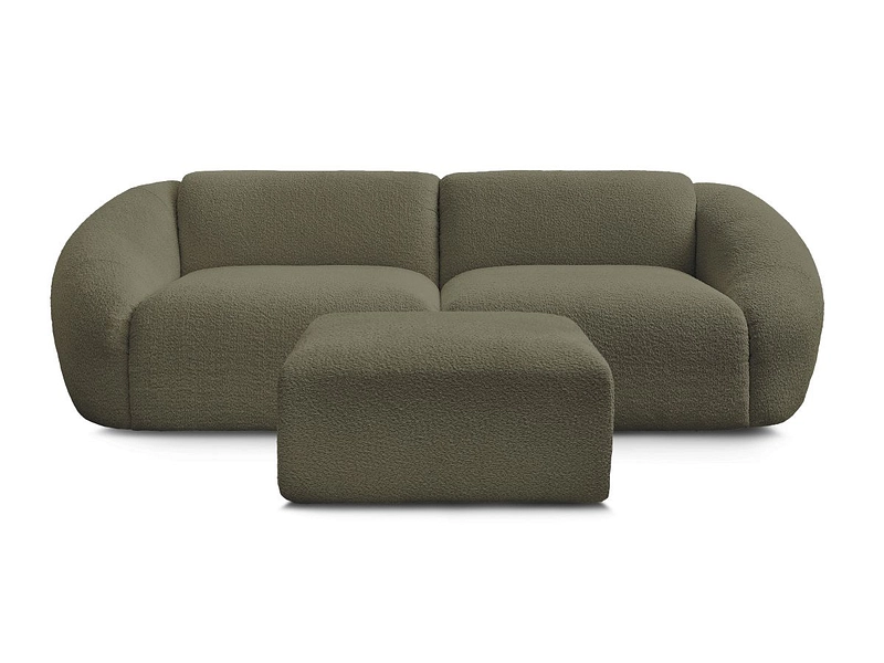 3er Sofa mit Hocker BOBOCHIC TINA Boucle-Stoff grün