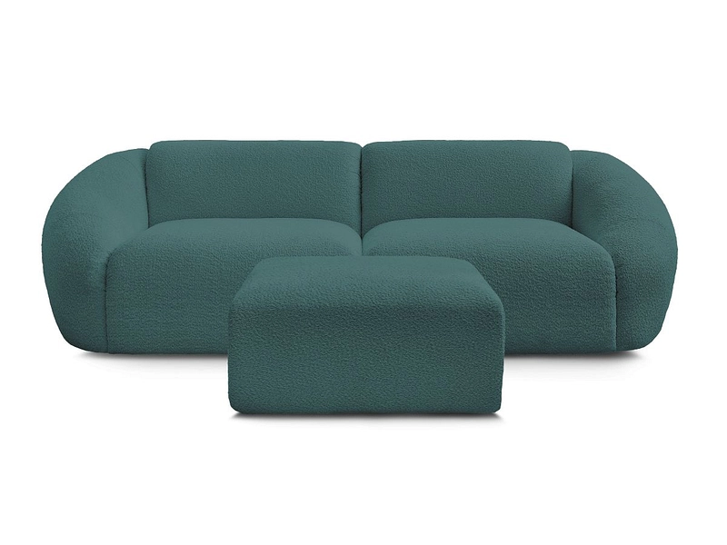 3er Sofa mit Hocker BOBOCHIC TINA Boucle-Stoff hellblau