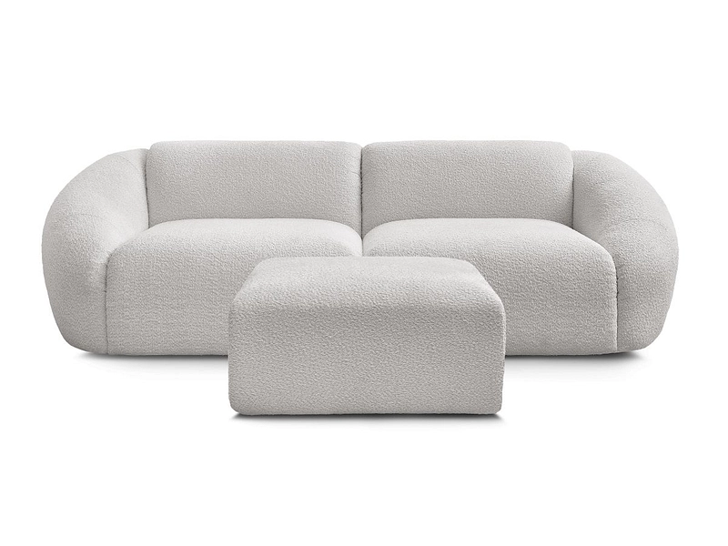 3er Sofa mit Hocker BOBOCHIC TINA Boucle-Stoff hellgrau