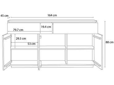 - Verfügt über 3 Türen und 2 geräumige Schubladen für viel Stauraum.