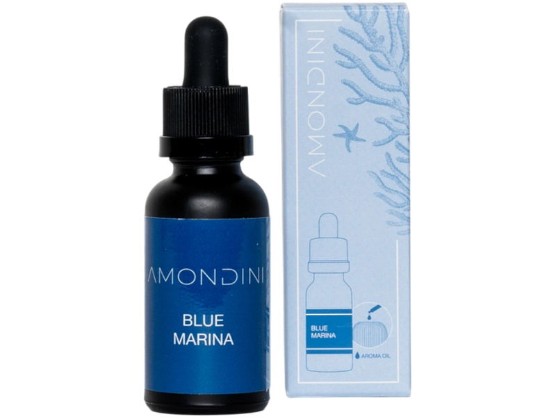 Das ätherische Öl AMONDINI blue marina bietet dir den Duft von Blue Marina, einen zarten Duft von Bergamotte, Jasmin und Moschus. Sein Glasflakon und die Kartonverpackung verleihen deinem Zuhause einen eleganten Touch. Dieses ätherische Öl in blauer Farbe wird eine erfrischende Meeresatmosphäre in dein Zuhause bringen.
