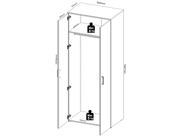 Aufbewahrungsschrank MULTI 2 Türen 52x80x195cm anthrazit