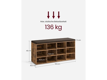 Bank für Schuhe SONGMICS BENCH 12 Paar Schuhe vintage braun