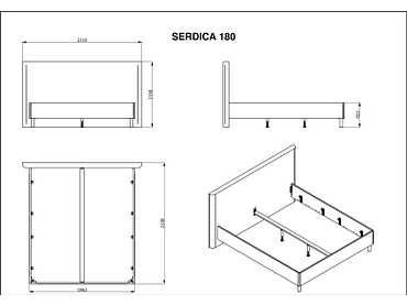 Bett SERDICA 180x200cm stoff kaschmir