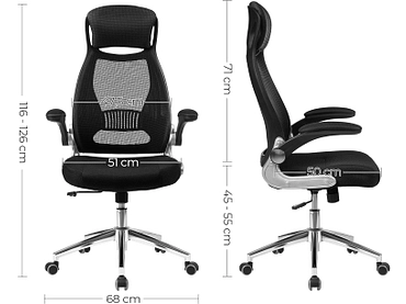 - Sitzhöhe einstellbar zwischen 45 und 54,5 cm und die Neigung kann entriegelt werden, wenn Sie den Mechanismus verwenden kippen
