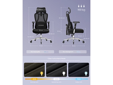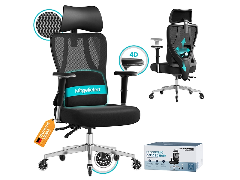 - Ergonomisch geformte S-förmige Rückenlehne für eine optimale Unterstützung der Wirbelsäule