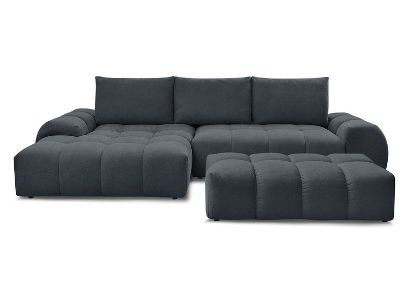 Ecksofa mit Hocker BOBOCHIC EVEREST Stoff mit Textur blau