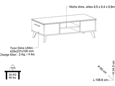 Couchtish KENT 50.1x106.6x35.2cm eiche