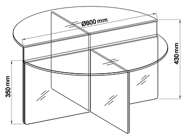 - Halbkreisförmiges Design, das zusammengesetzt einen kompletten runden Tisch mit den Maßen 80 × 80 × 43 cm bildet.