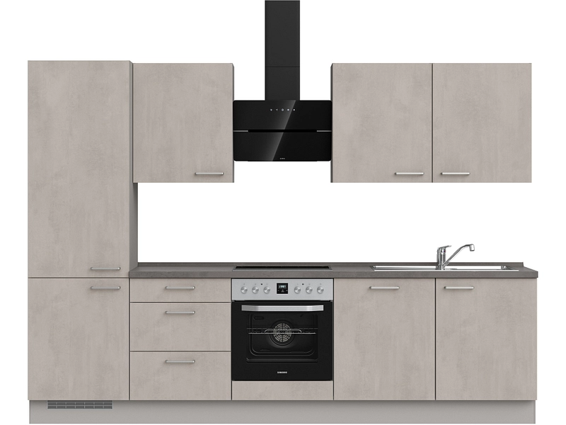 Komplette Küche MODUSET RIVA PREMIUM Beton Grau 60x300cm