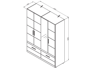 Drehtürenschrank HAMILTON weiss 4 Türen 2 Schubladen