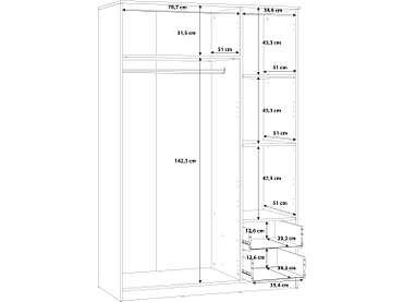 Drehtürenschrank LUBECK eiche 3 Türen 2 Schubladen