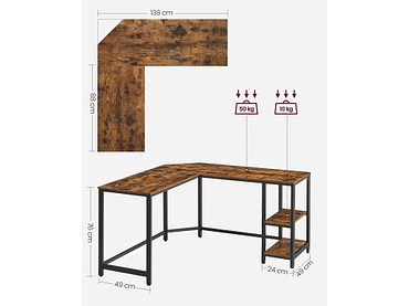Eckschreibtisch SONGMICS RUSTIK 138x138x76cm braun