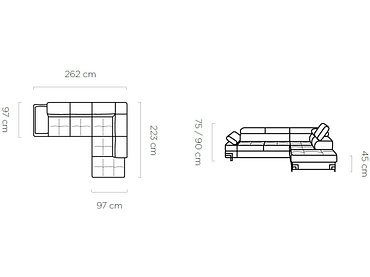 - Wohnlandschaft mit Schlaffunktion und Bettkasten in der Ottomane. Inkl. 3x verstellbare Kopfstütze, 1x verstellbare Armlehne.