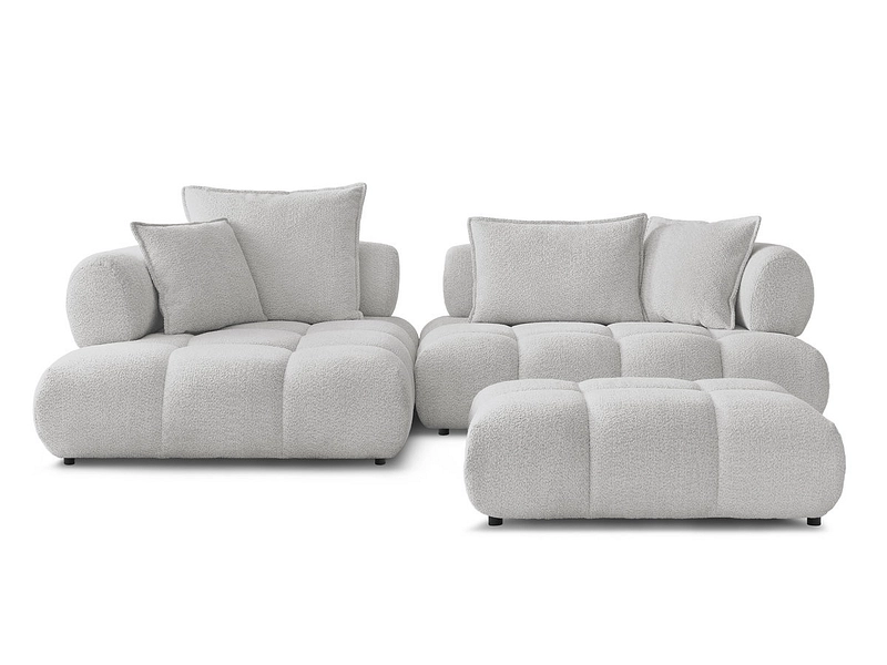 Ecksofa mit Hocker BOBOCHIC ALYA Boucle-Stoff hellgrau