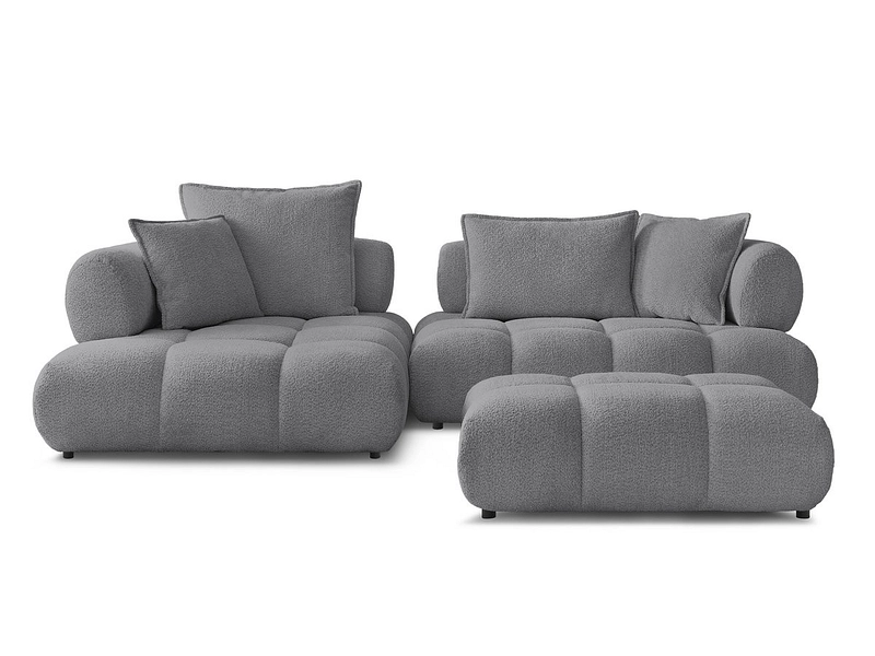 Ecksofa mit Hocker BOBOCHIC ALYA Boucle-Stoff dunkelgrau