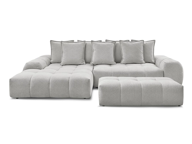 Ecksofa mit Hocker BOBOCHIC EVEREST Stoff chiniert hellgrau