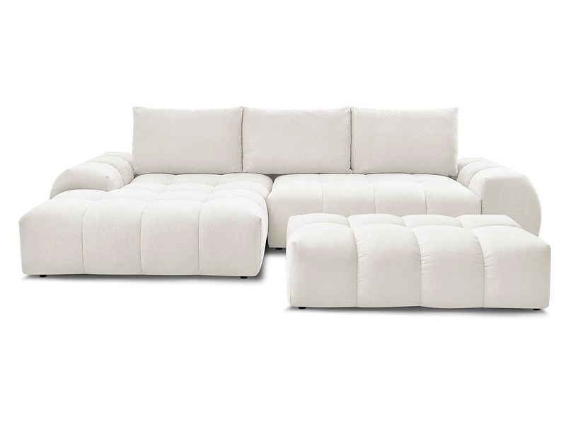 Ecksofa mit Hocker BOBOCHIC EVEREST Stoff mit Textur weiss
