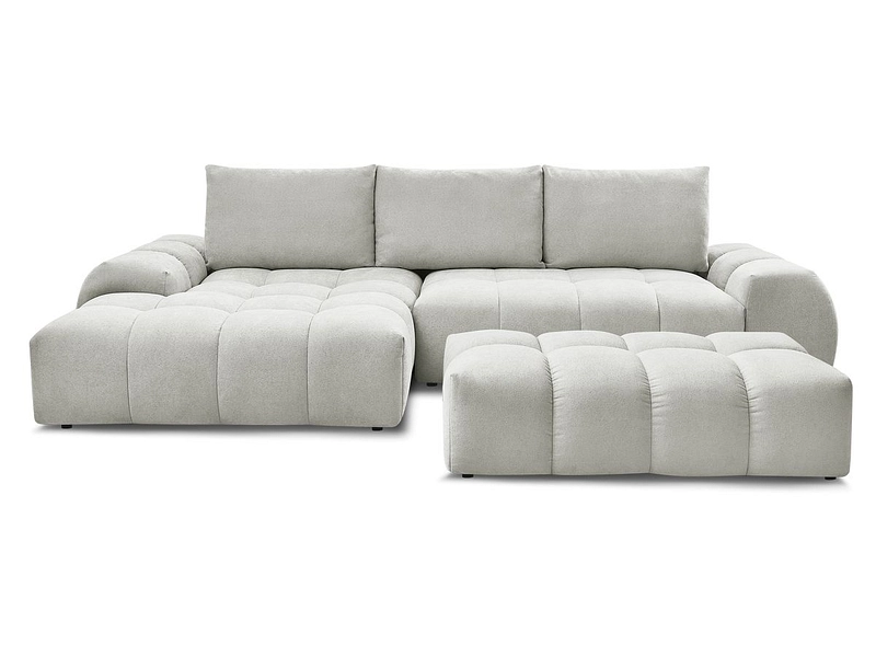 Ecksofa mit Hocker BOBOCHIC EVEREST Stoff mit Textur hellgrau