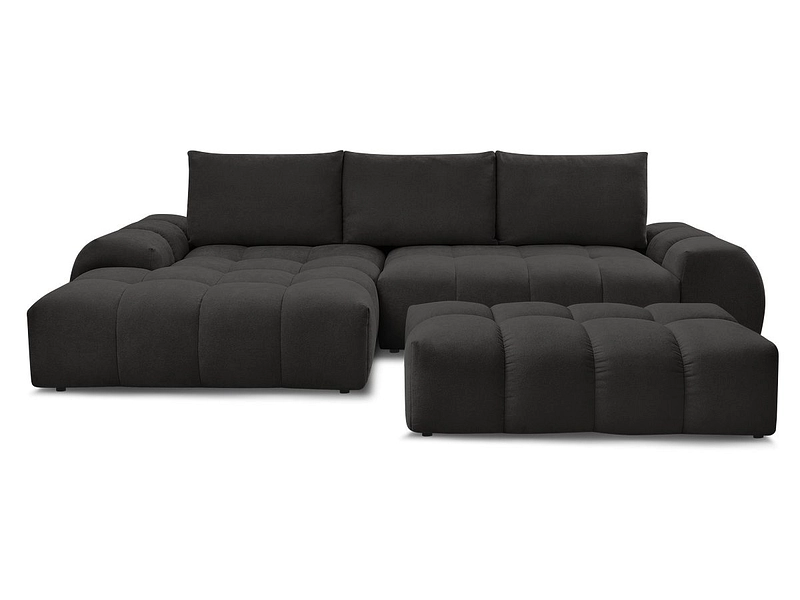 Ecksofa mit Hocker BOBOCHIC EVEREST Stoff mit Textur schwarz