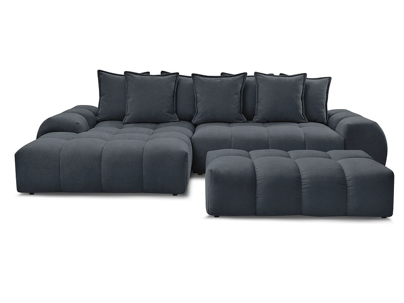 Ecksofa mit Hocker BOBOCHIC EVEREST Stoff mit Textur blau