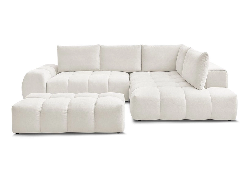 Ecksofa mit Hocker BOBOCHIC EVEREST Stoff mit Textur weiss