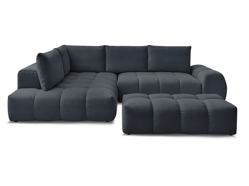 Ecksofa mit Hocker BOBOCHIC EVEREST Stoff mit Textur dunkelblau